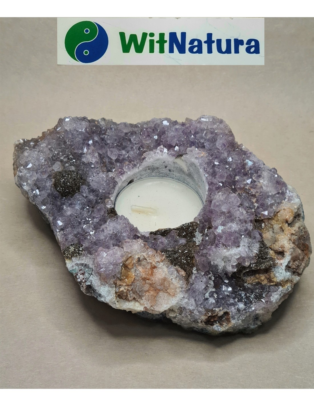 Świecznik z przepięknej szczotki kryształu ametystu.