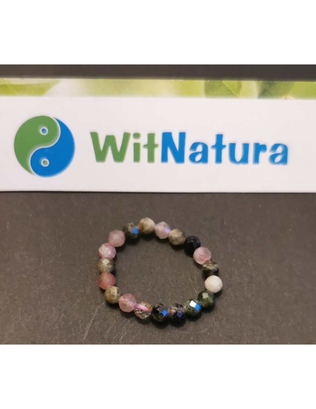 Piękny pierścionek z turmalinu kolorowego na gumce.