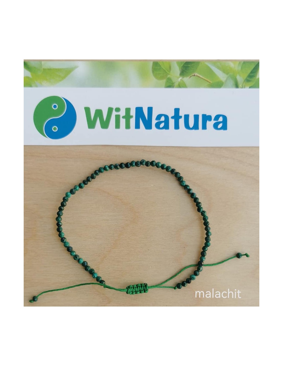 MALACHIT, REGULOWANA BRANSOLETKA, FASETOWANE KULKI 2MM