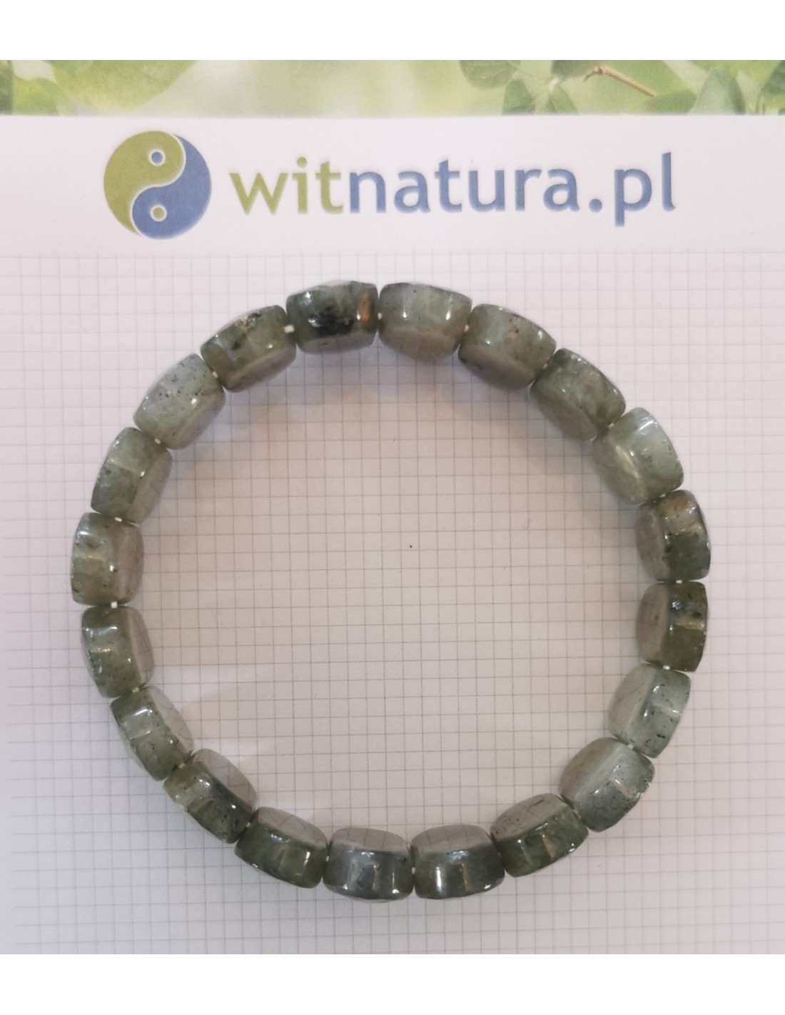 Bransoletka na gumce z labradorytu.