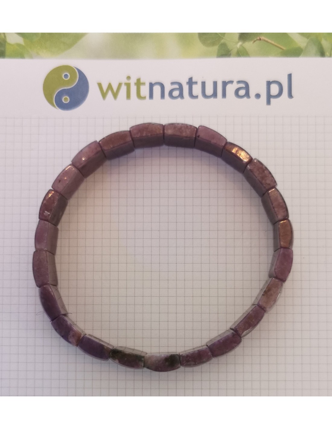 Bransoletka na gumce z czaroitu, średniej jakości.