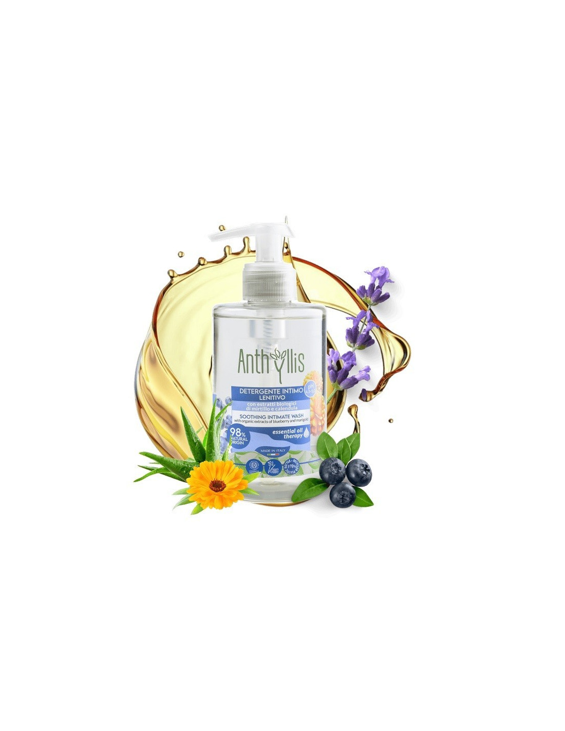 EKOLOGICZNY PŁYN DO HIGIENY INTYMNEJ Z WYCIĄGIEM Z BORÓWKI I NAGIETKA, CERTYFIKOWANY, 300ml, ANTHYLLIS, PIERPAOLI