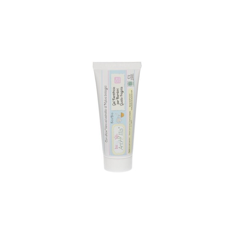Pasta do zębów dla dzieci, od pierwszego ząbka, z aloesem i ekstraktem z organicznej malwy, o smaku truskawkowym, Baby Anthyllis, Pierpaoli. Pasta do zębów dla dzieci Pierpaoli jest bezpieczna dla dzieci, posiada stosowne certyfikaty, NIE ZAWIERA FLUORU.