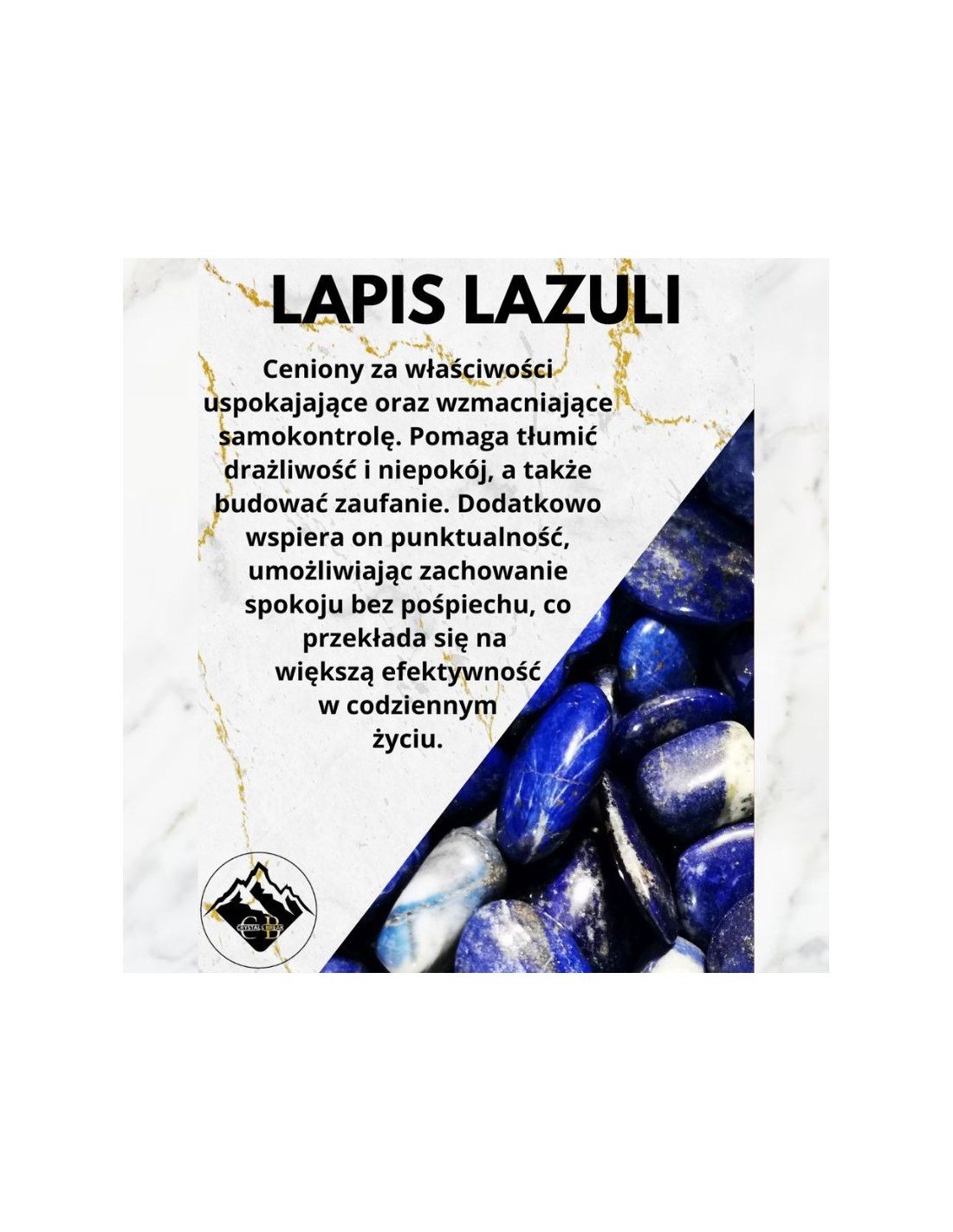 Lapis Lazuli, głęboko niebieski kamień, jest ceniony za właściwości uspokajające oraz wzmacniające samokontrolę. Pomaga tłumić drażliwość i niepokój, a także budować zaufanie. Dodatkowo wspiera on punktualność, umożliwiając zachowanie spokoju bez pośpiechu, co przekłada się na większą efektywność w codziennym życiu.
