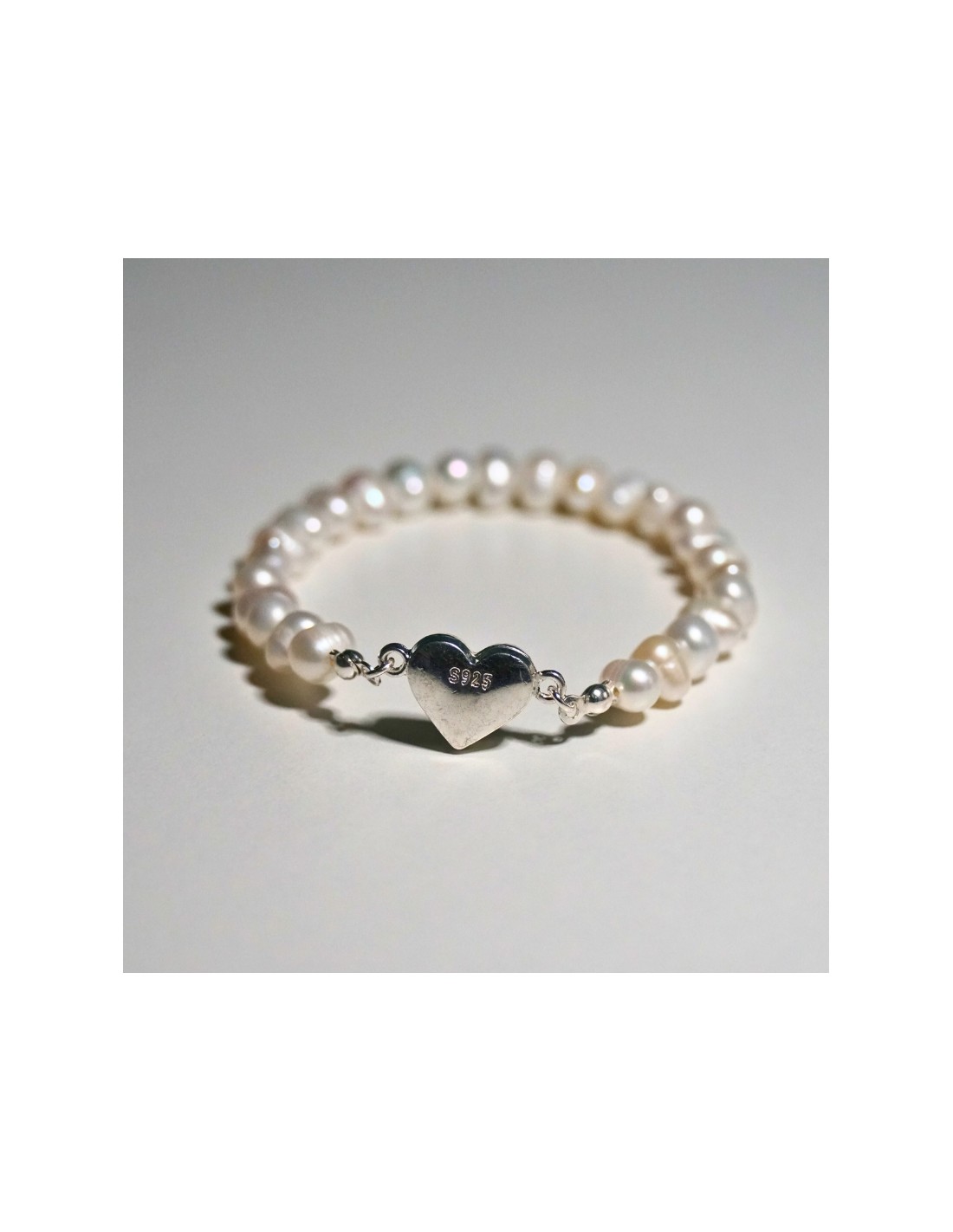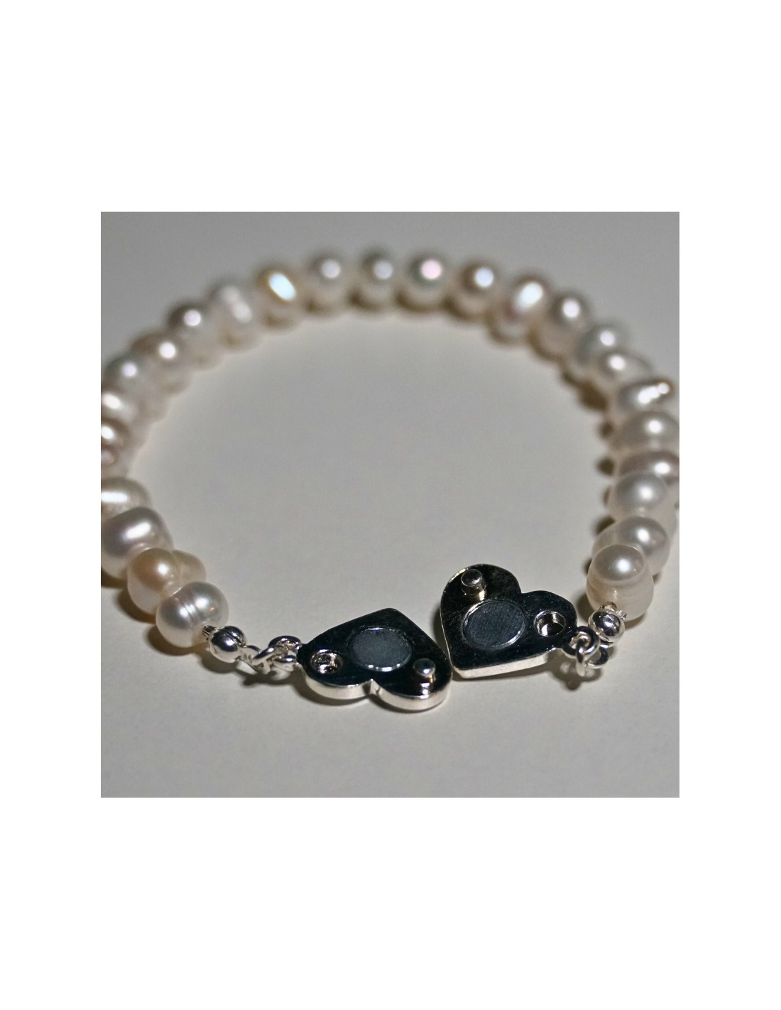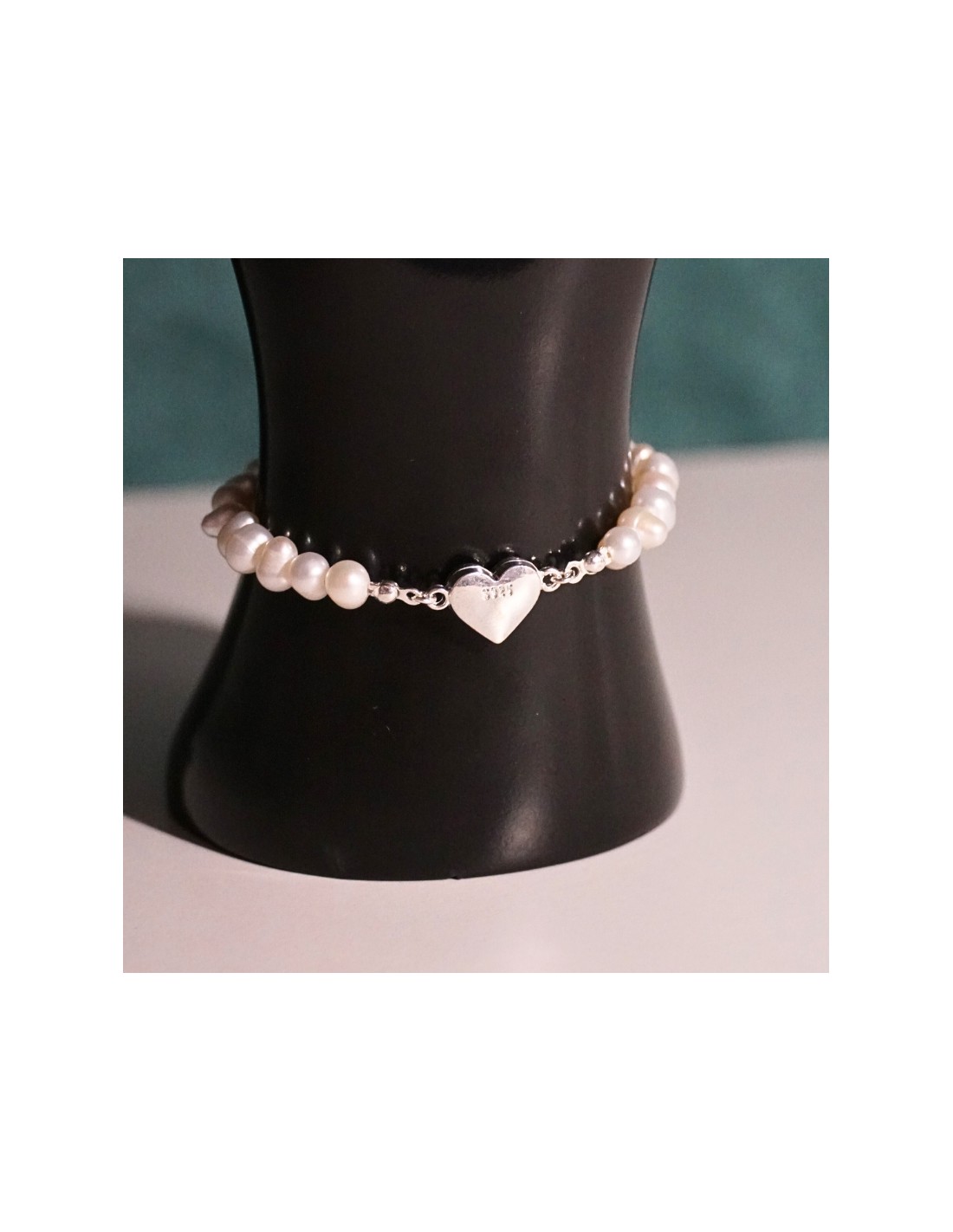 Użyto: Perły naturalne (hodowlane), zakończenia srebro próby 925, zapięcie serce z dodatkowym zabezpieczeniem uniemożliwiającym przypadkowe odpięcie bransoletki również wykonane ze srebra 925.