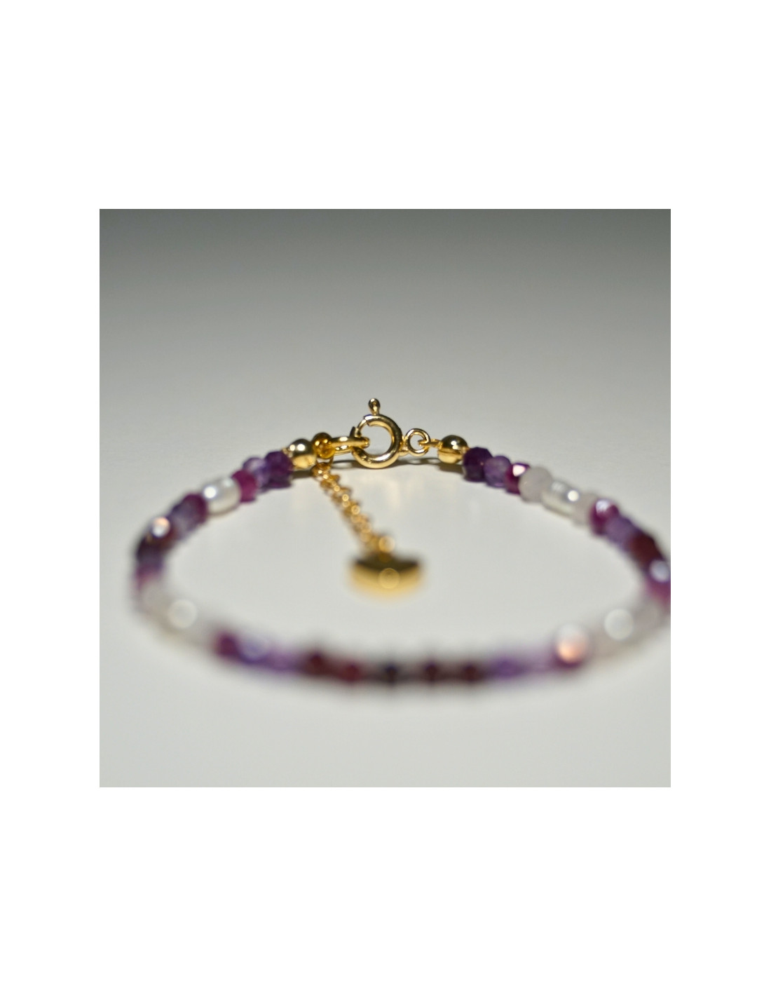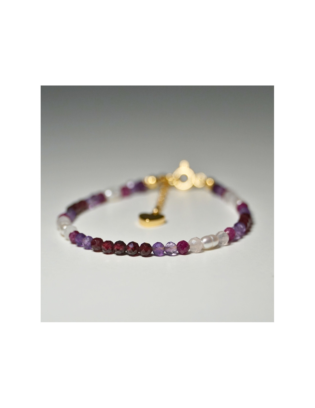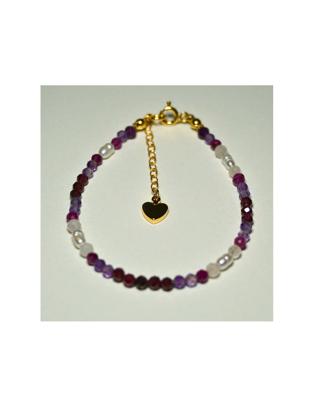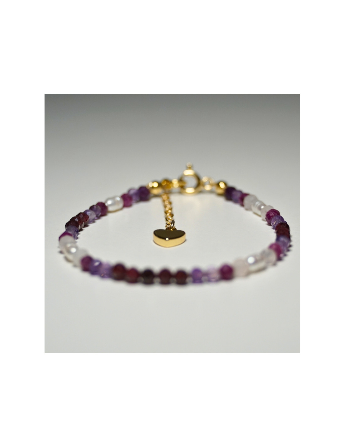 Użyto: Kamień (kwarc różowy, ametyst, rubin, perła, granat), przekładki, zapięcie oraz przedłużka srebro próby 925, zawieszka w formie serca wykonana ze stali chirurgicznej.
