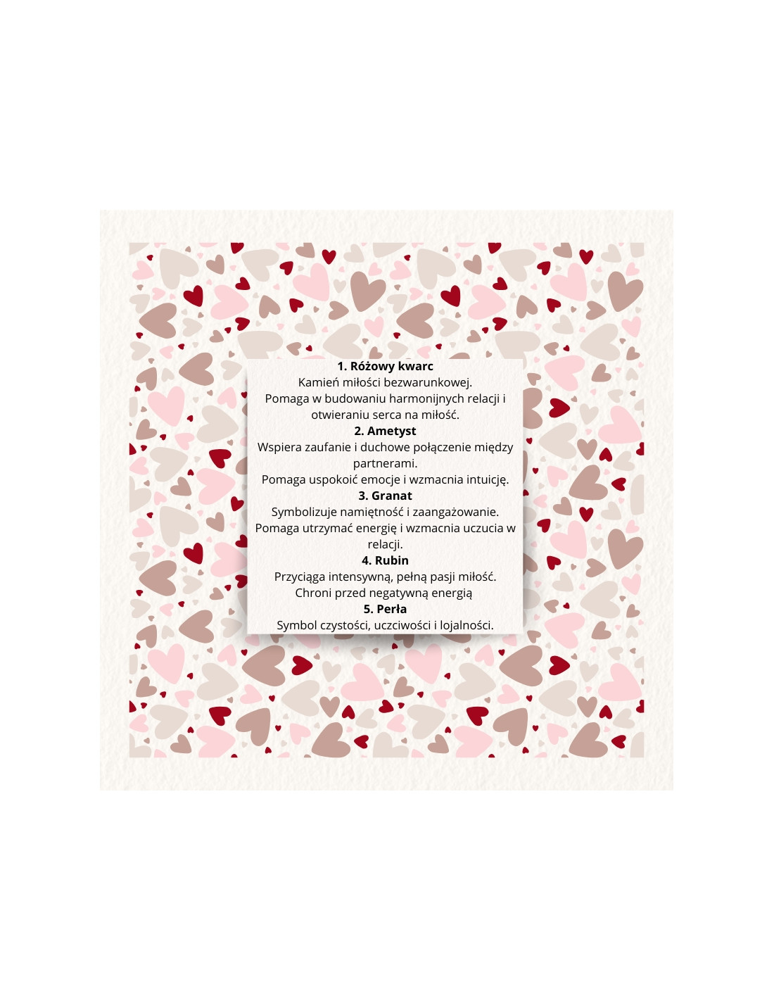 1. Różowy kwarc - Kamień miłości bezwarunkowej, pomaga w budowaniu harmonijnych relacji i otwieraniu serca na miłość.