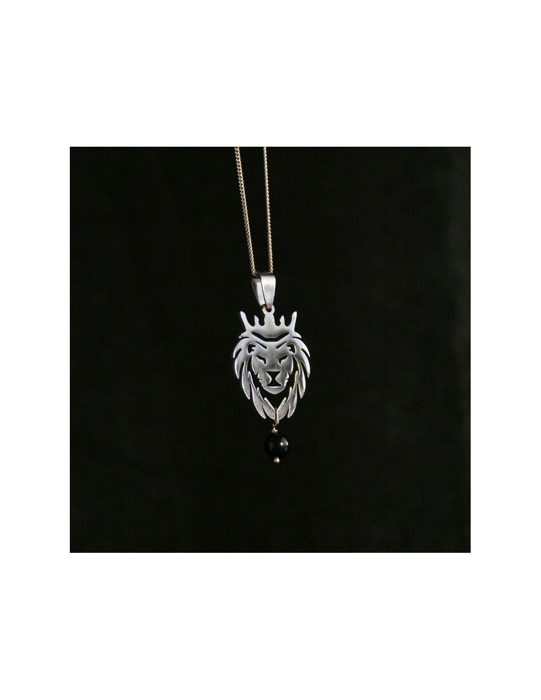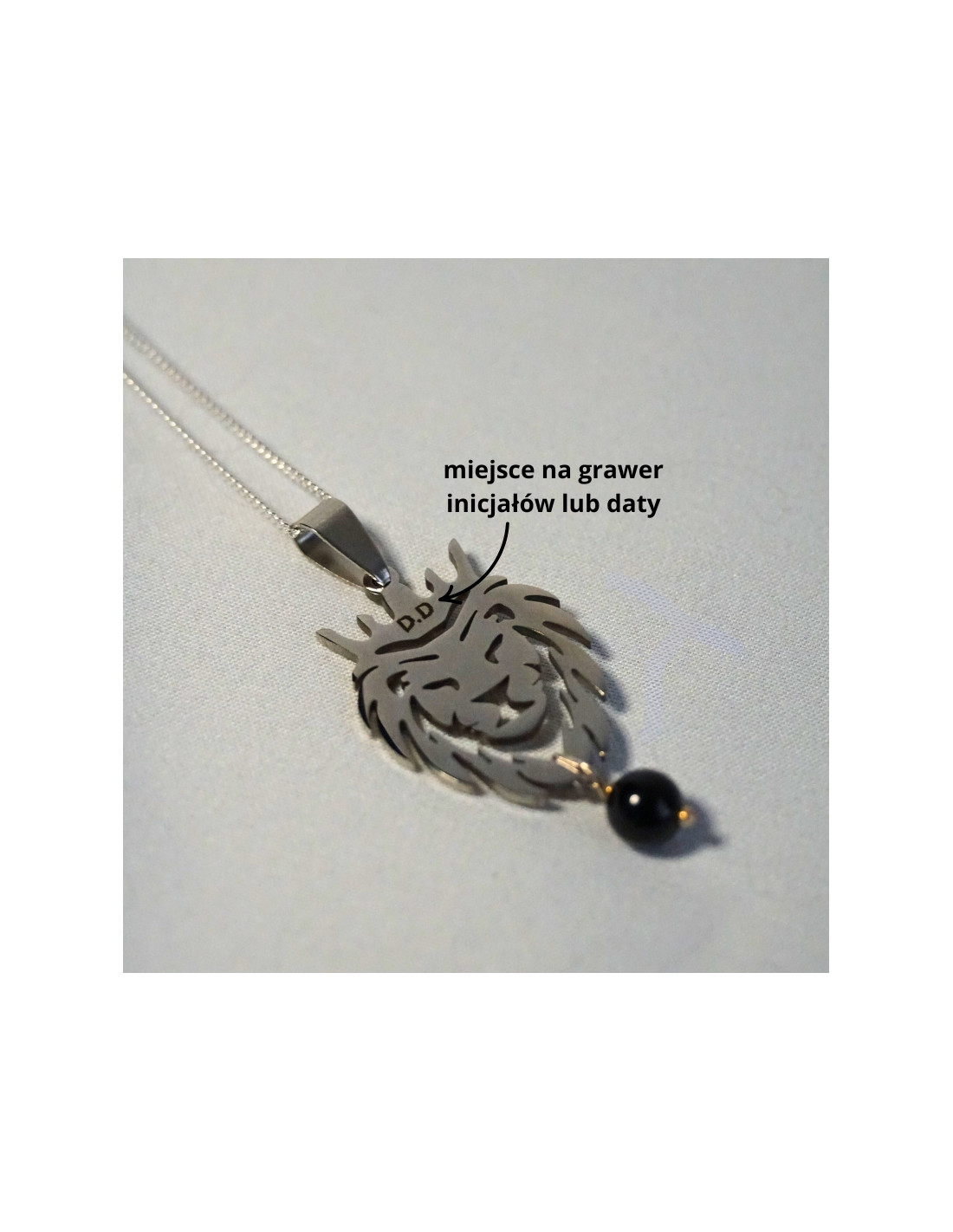 Użyto: Lew stal, kamień naturalny Turmalin czarny, naszyjnik oraz zapięcie srebro próby 925.