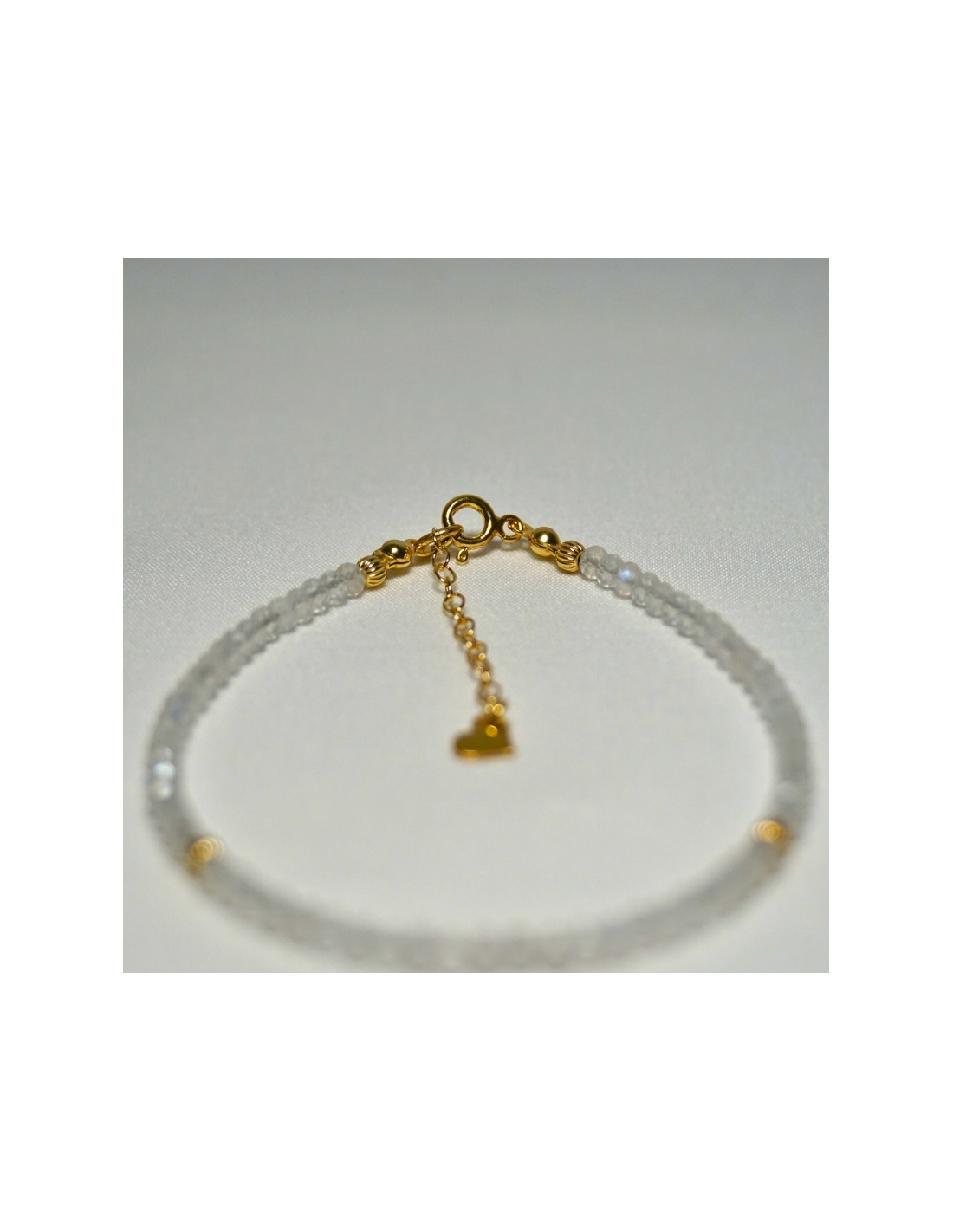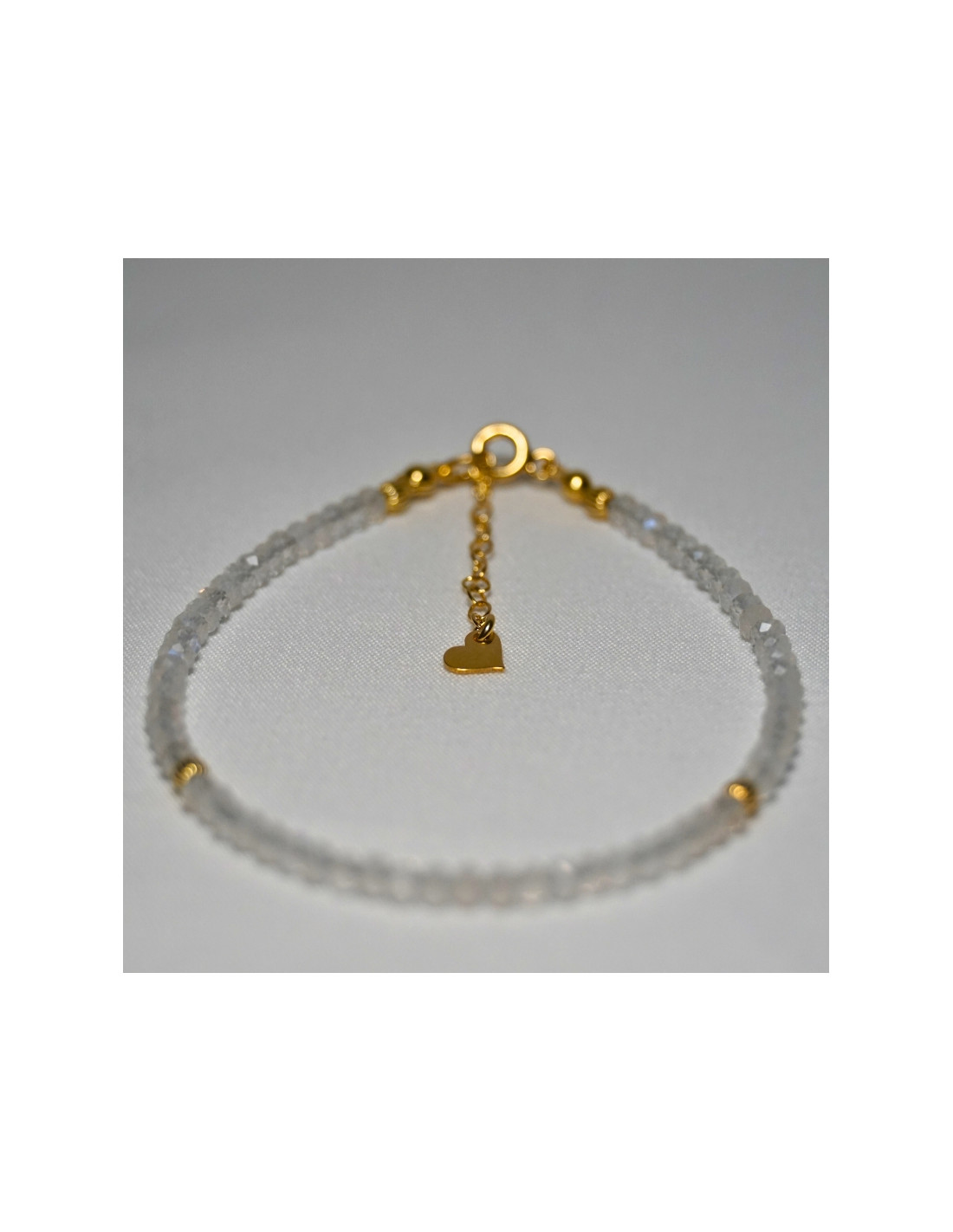 Użyto: Kamień Kryształ Górski, przekładki, zapięcie oraz przedłużka pozłacane srebro próby 925, zawieszka w formie serduszka wykonana z pozłacanego srebra.