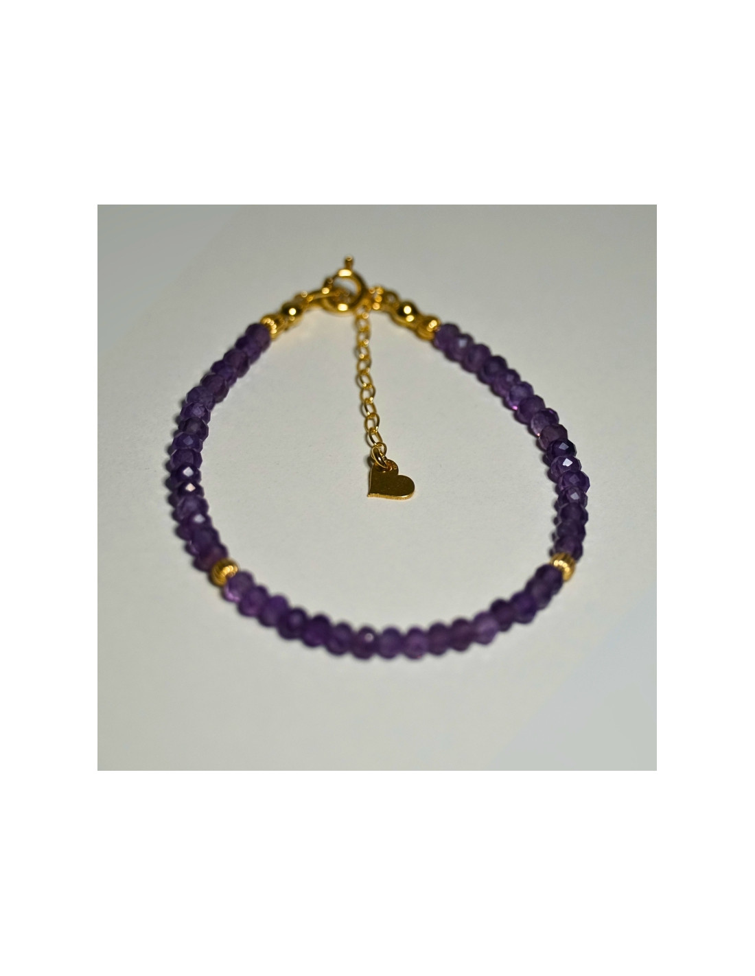 Użyto: Kamień Ametyst, przekładki, zapięcie oraz przedłużka pozłacane srebro próby 925, zawieszka w formie serduszka wykonana z pozłacanego srebra.