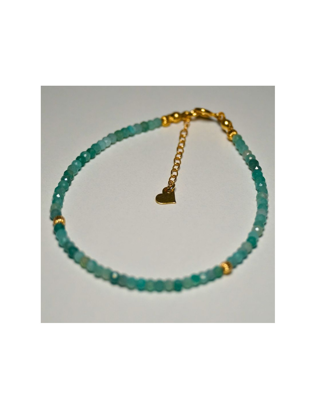 Użyto: Kamień szlachetny Szmaragd Jasny, przekładki, zapięcie oraz przedłużka pozłacane srebro próby 925, zawieszka w formie serduszka wykonana z pozłacanego srebra.