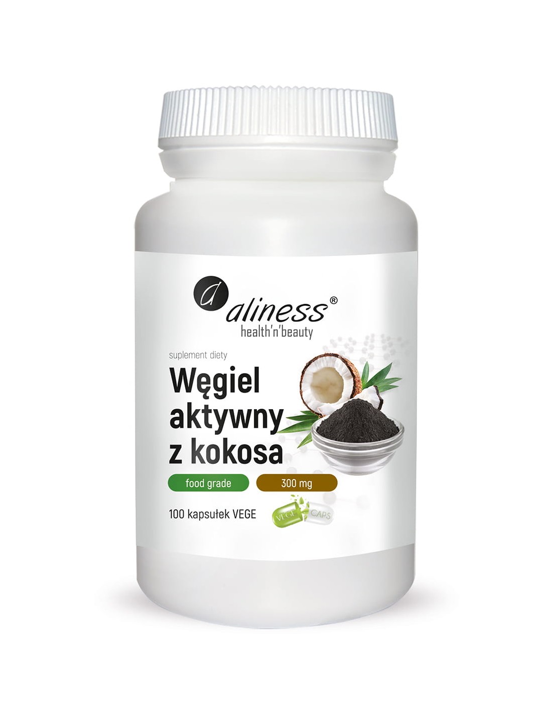 WĘGIEL AKTYWNY Z KOKOSA " FOOD GRADE" 300 mg x 100 Vege caps. - ALINESS