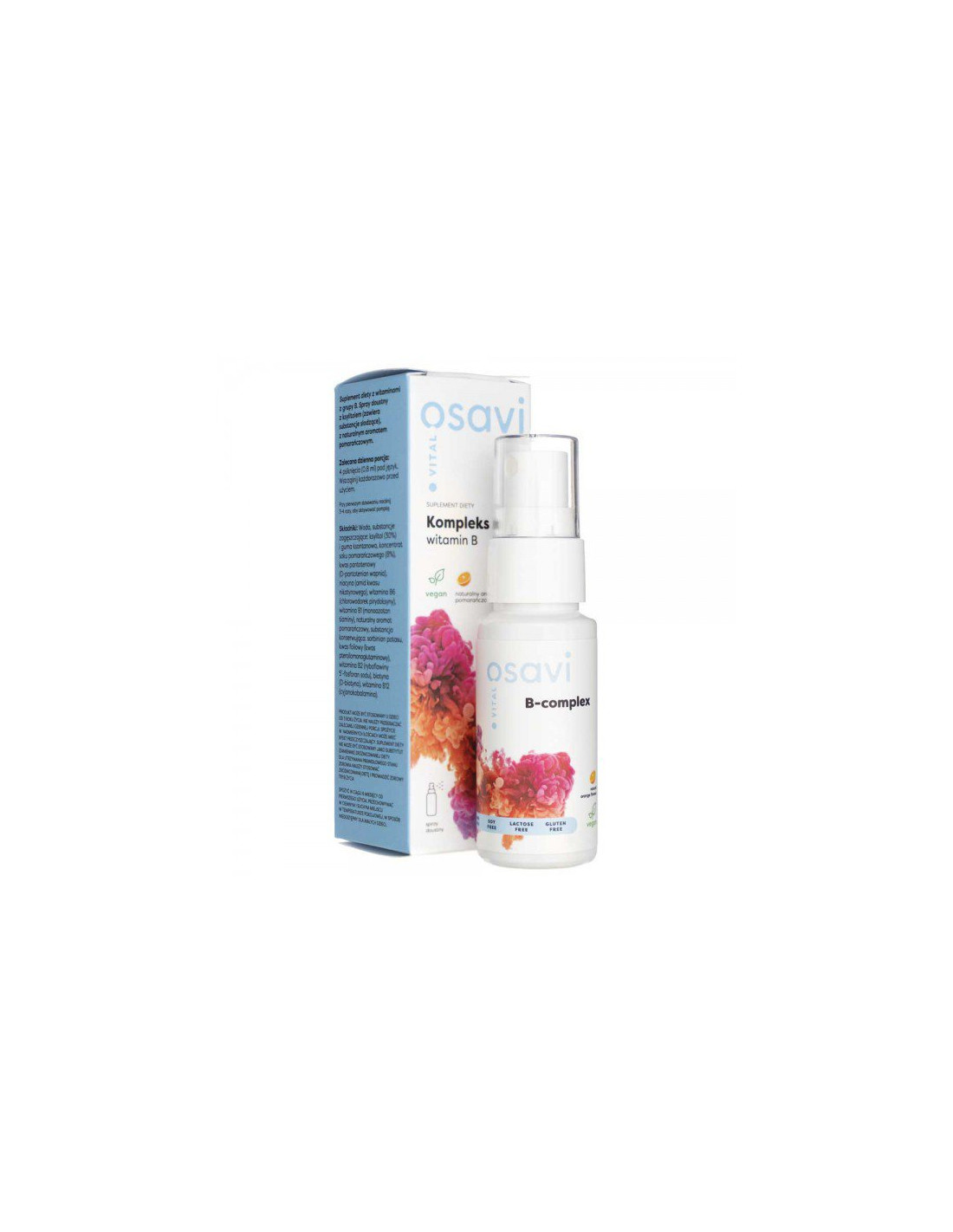 Kompleks Witamin B Spray Doustny 25ml Osavi to suplement diety w formie sprayu doustnego zawierający specjalną kompozycję niezbędnych witamin z grupy B, stworzonej, aby wspomagać zdrową dietę i styl życia. Nasz kompleks witamin z grupy B został zaprojektowany tak, by był wygodny w stosowaniu a oprócz tego – smaczny. Wzbogacony naturalnym aromatem pomarańczowym spray jest odpowiedni również dla wegan. Zawiera on wszystkie osiem niezbędnych witamin z grupy B: witaminę B1, B2, niacynę, B6, kwas foliowy, witaminę B12, biotynę i kwas pantotenowy. Te grupy powiązanych ze sobą witamin odgrywają różne, istotne role w całym organizmie.
