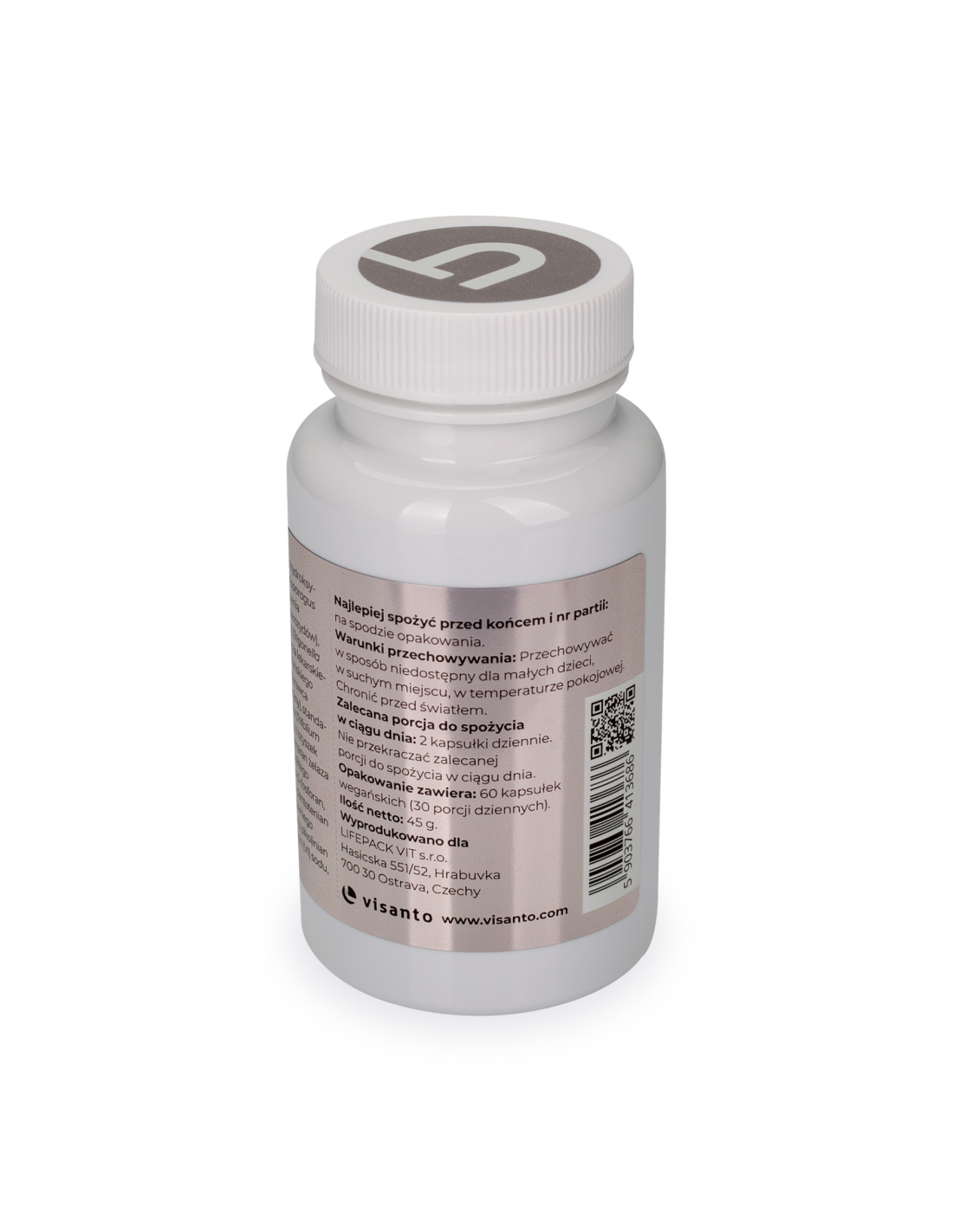 Opakowanie zawiera: 60 kapsułek wegańskich (30 porcji dziennych).