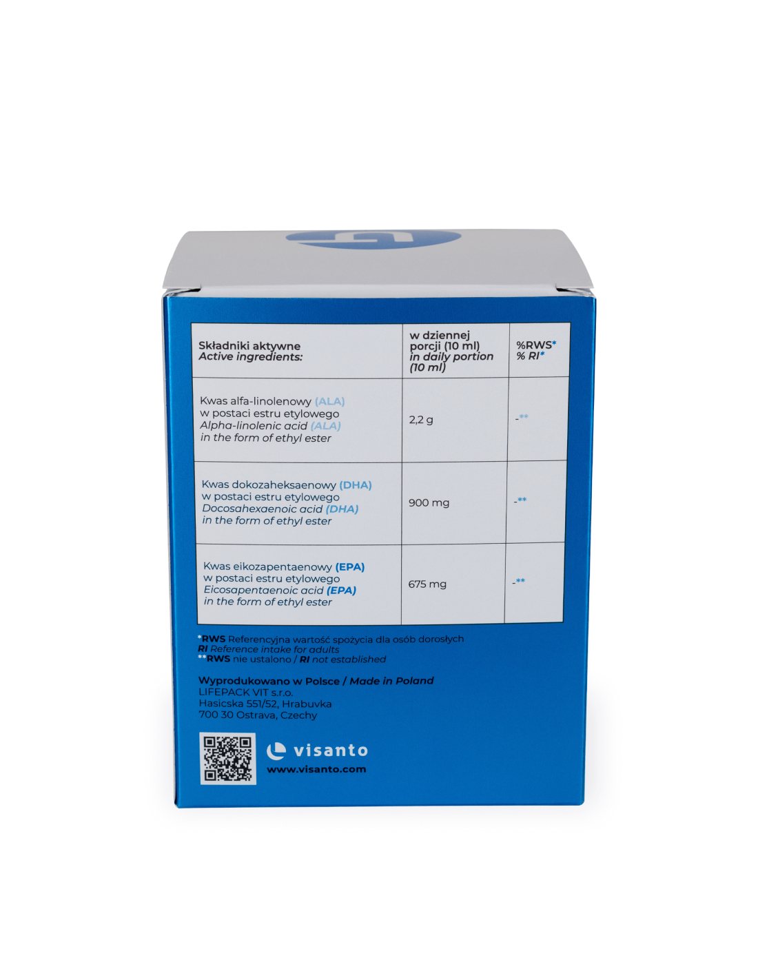 To suplement diety o skoncentrowanej zawartości trzech najważniejszych dla organizmu człowieka kwasów tłuszczowych z grupy OMEGA 3 (EPA, DHA, ALA). Zawarte w preparacie kwasy tłuszczowe omega występują w unikalnej formie monocząsteczek (estrów etylowych).