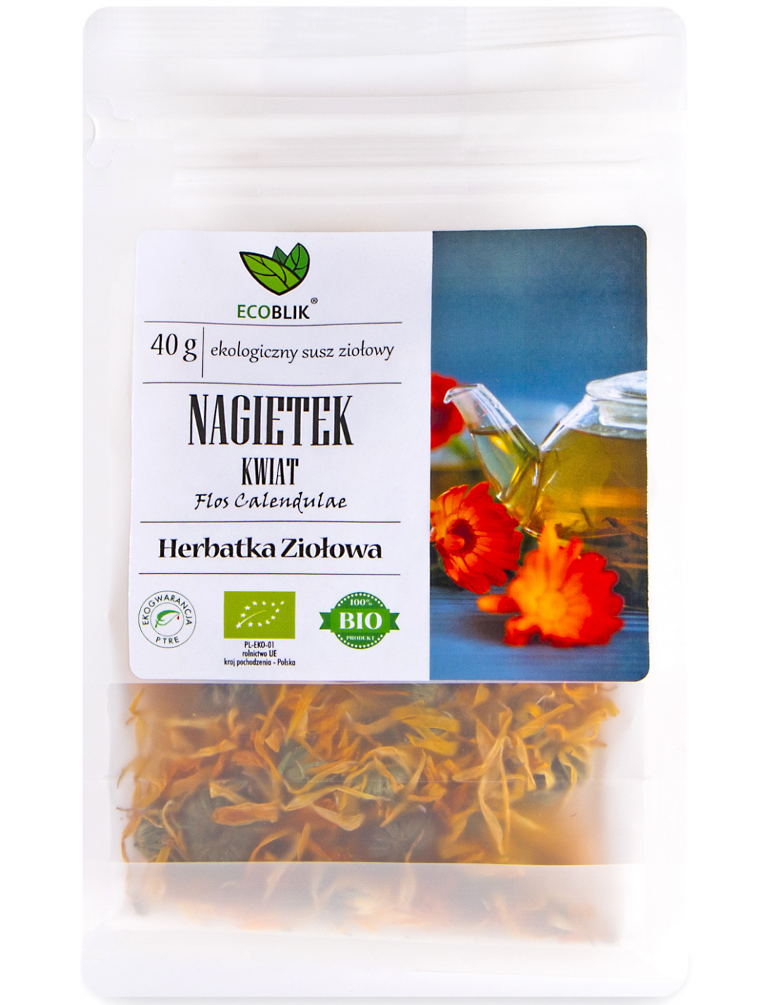 Składniki: Ekologiczny kwiat nagietka 100%.