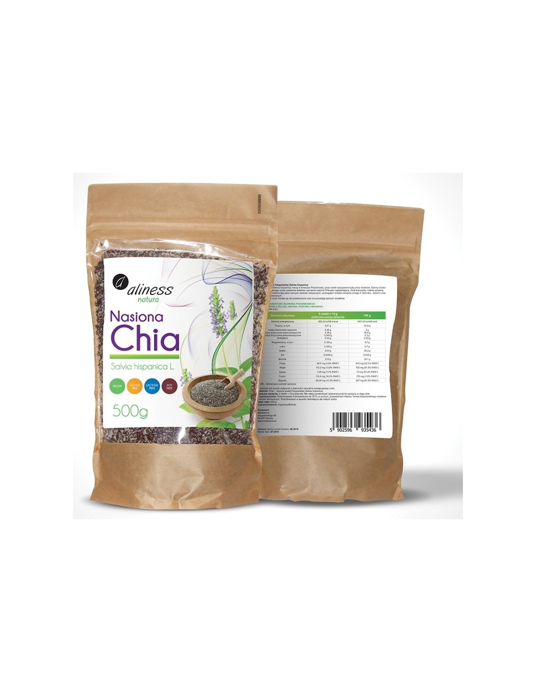 Nasiona Chia marki Aliness są nie przetworzone oraz nie posiadają żadnych dodatków.